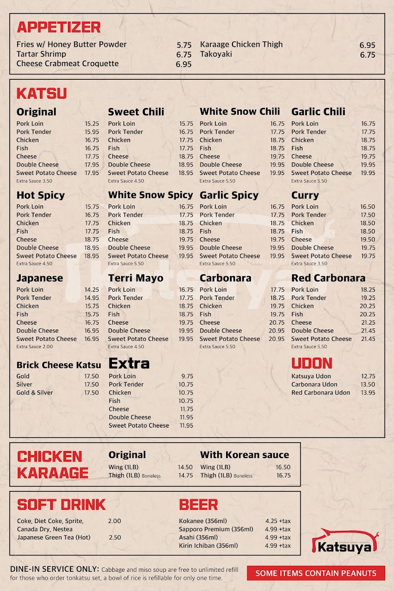 Welcome to Katsuya - Coquitlam, a culinary gem nestled in the heart of Coquitlam, BC. Renowned for its diverse and delicious menu, Katsuya specializes in katsu dishes that cater to all palates. From the irresistible White Snow Chili Katsu—featuring a flavorful pork loin with mozzarella and a unique sweet potato cheese—to the indulgent Red Carbonara Katsu, every offering is a work of art.